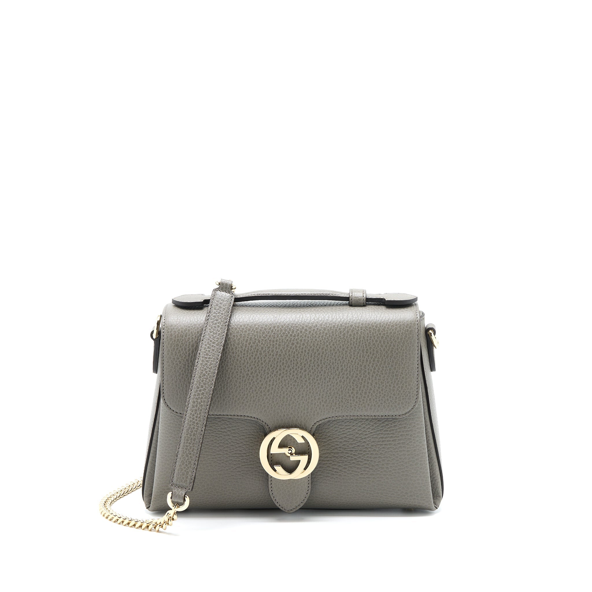 Gucci GG Top Handle Bag Caflskin Grey LGHW