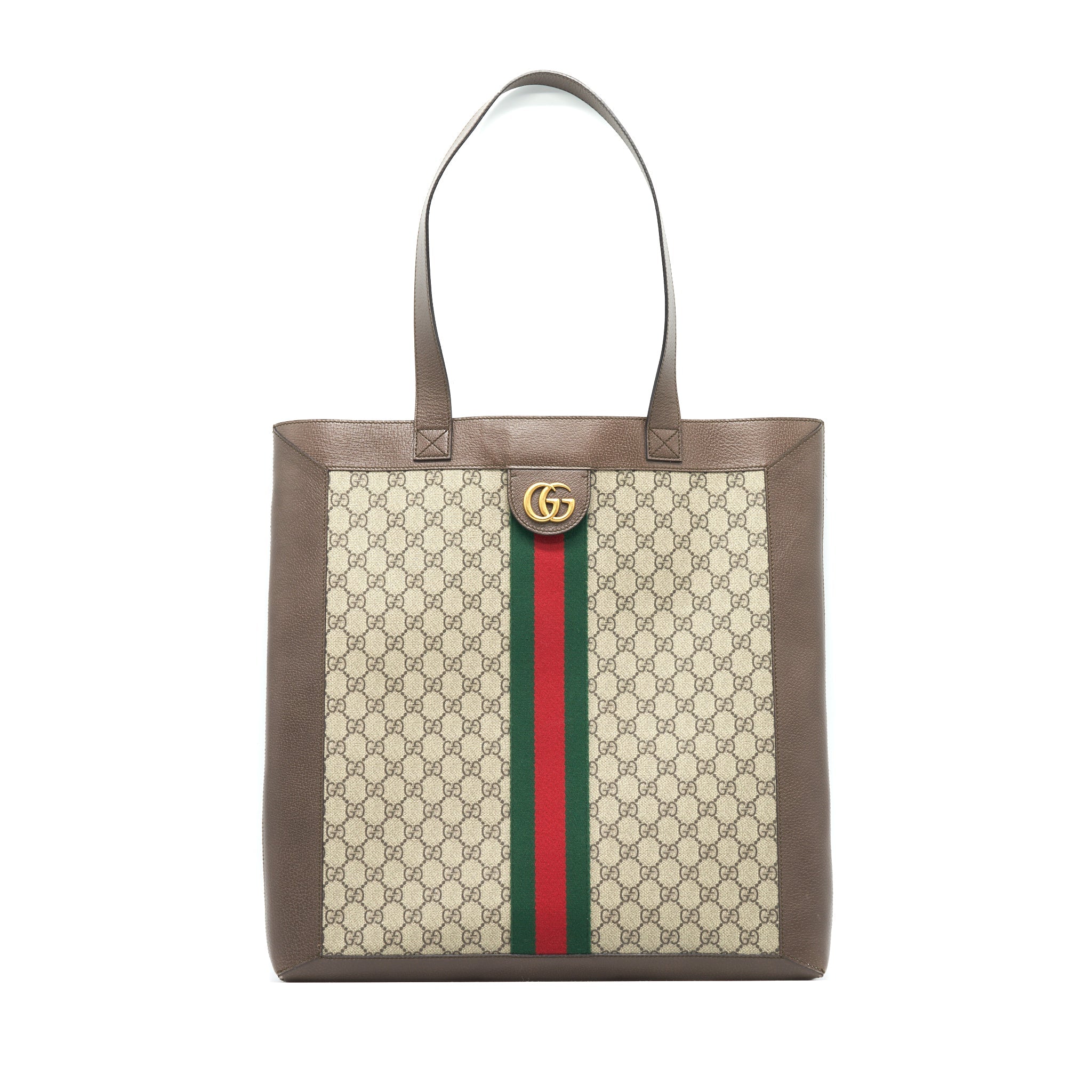 Gucci Ophidia GG Leather Trimmed Printed Coated Canvas Tote