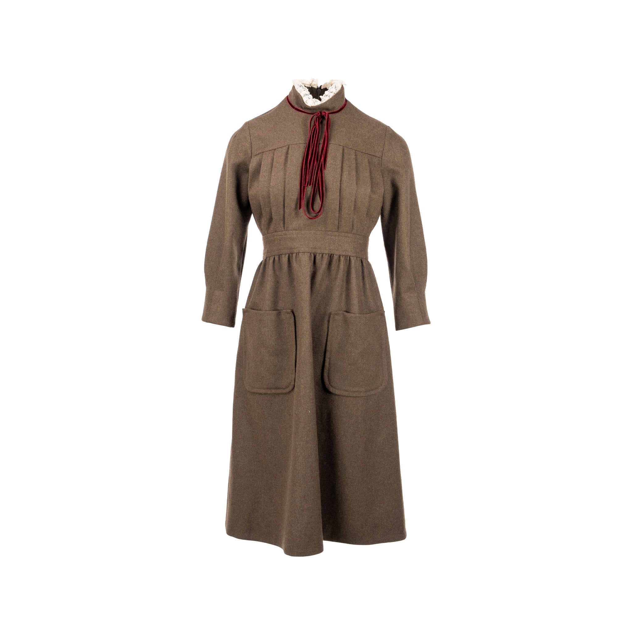 Gucci Size 38 Lace Collar Dress Wool Brown