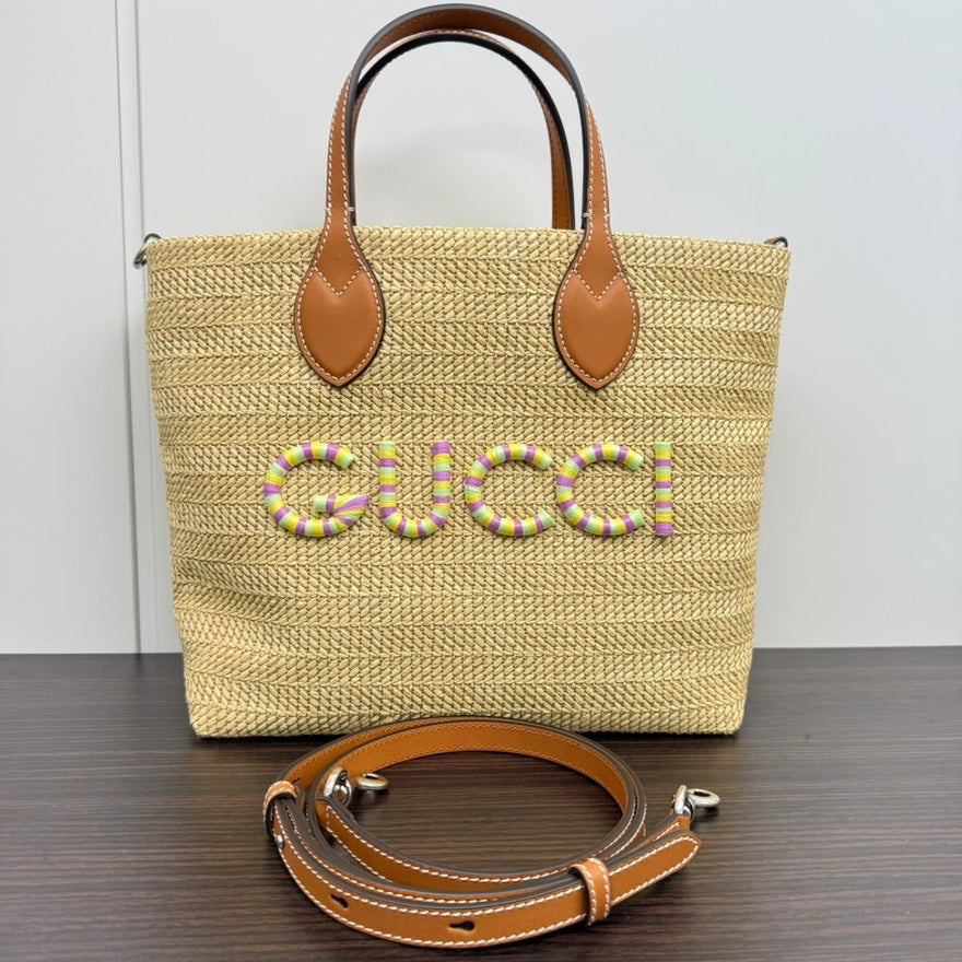 Gucci Straw Leather Beige 2-Way Tote Bag LB110057