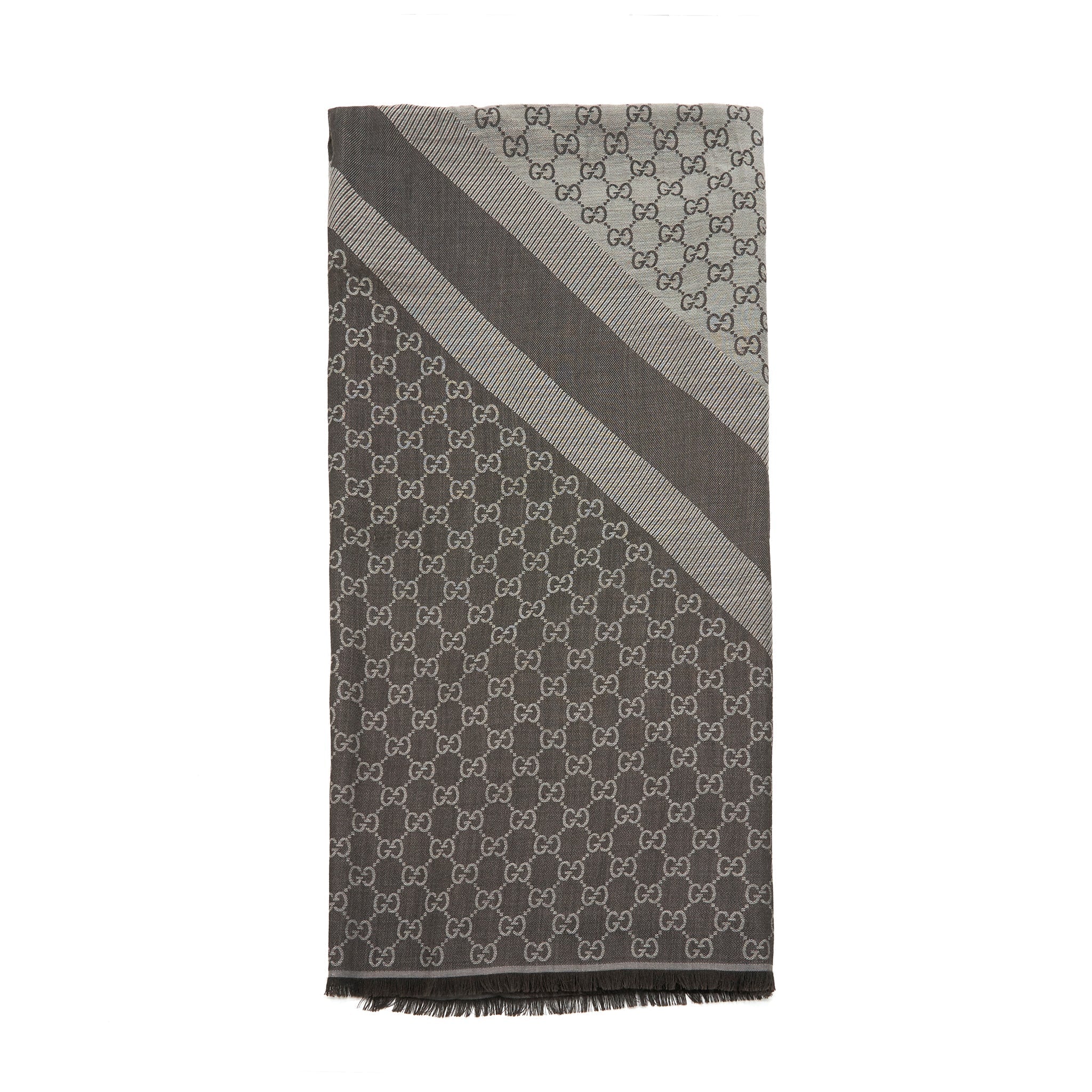 GUCCI Wool Jacquard GG Logo Scarf Dark Brown 140x140cm