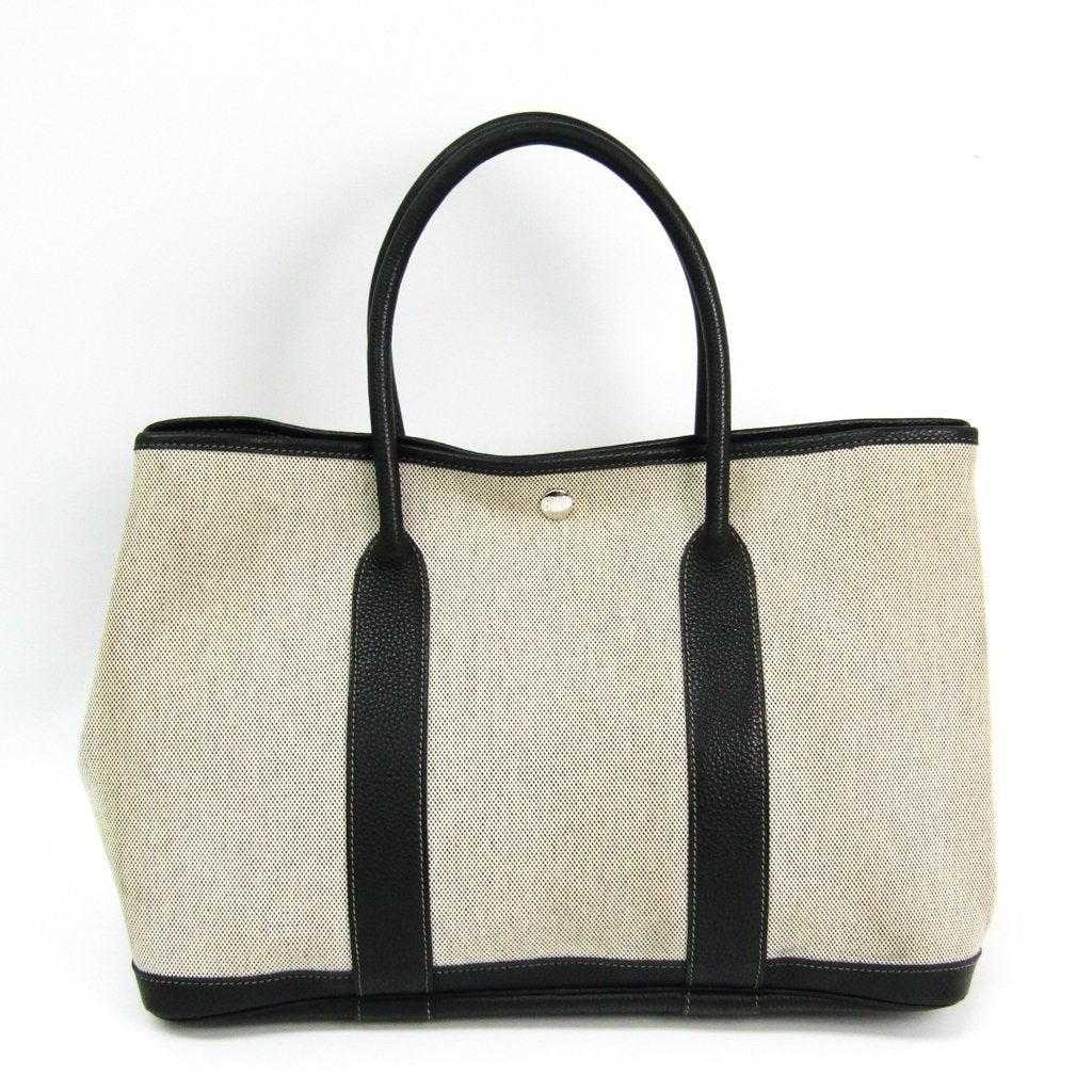 Hermes Natural/Black Canvas Garden Party 36 Tote (SHA11055)