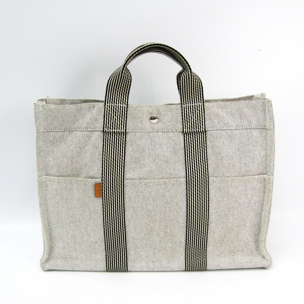 Hermes White/Black Canvas Fourre Tout MM Tote (SHA-35858)