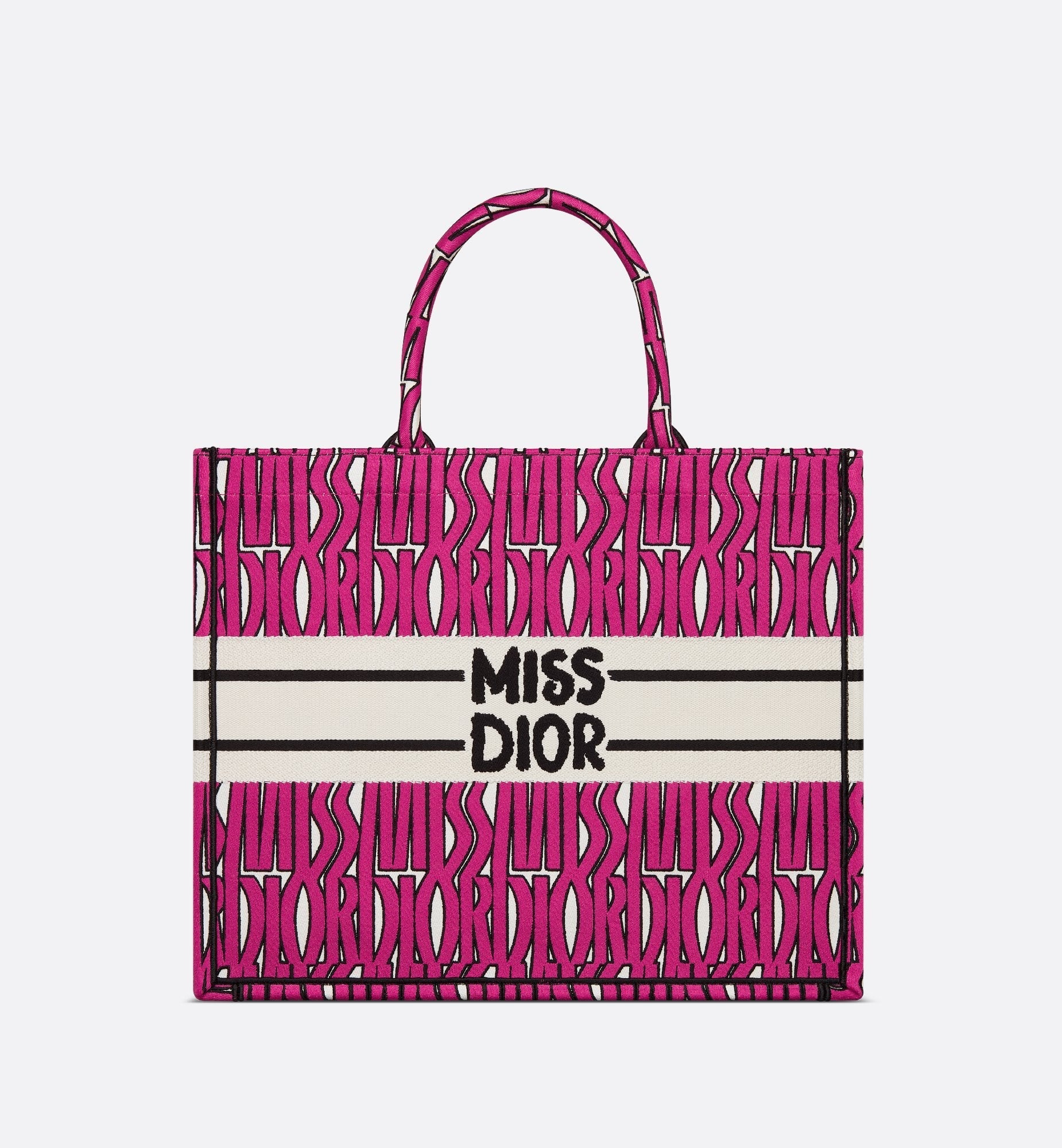 Large Dior Book Tote Fuchsia And Black Miss Dior Allover Embroidery