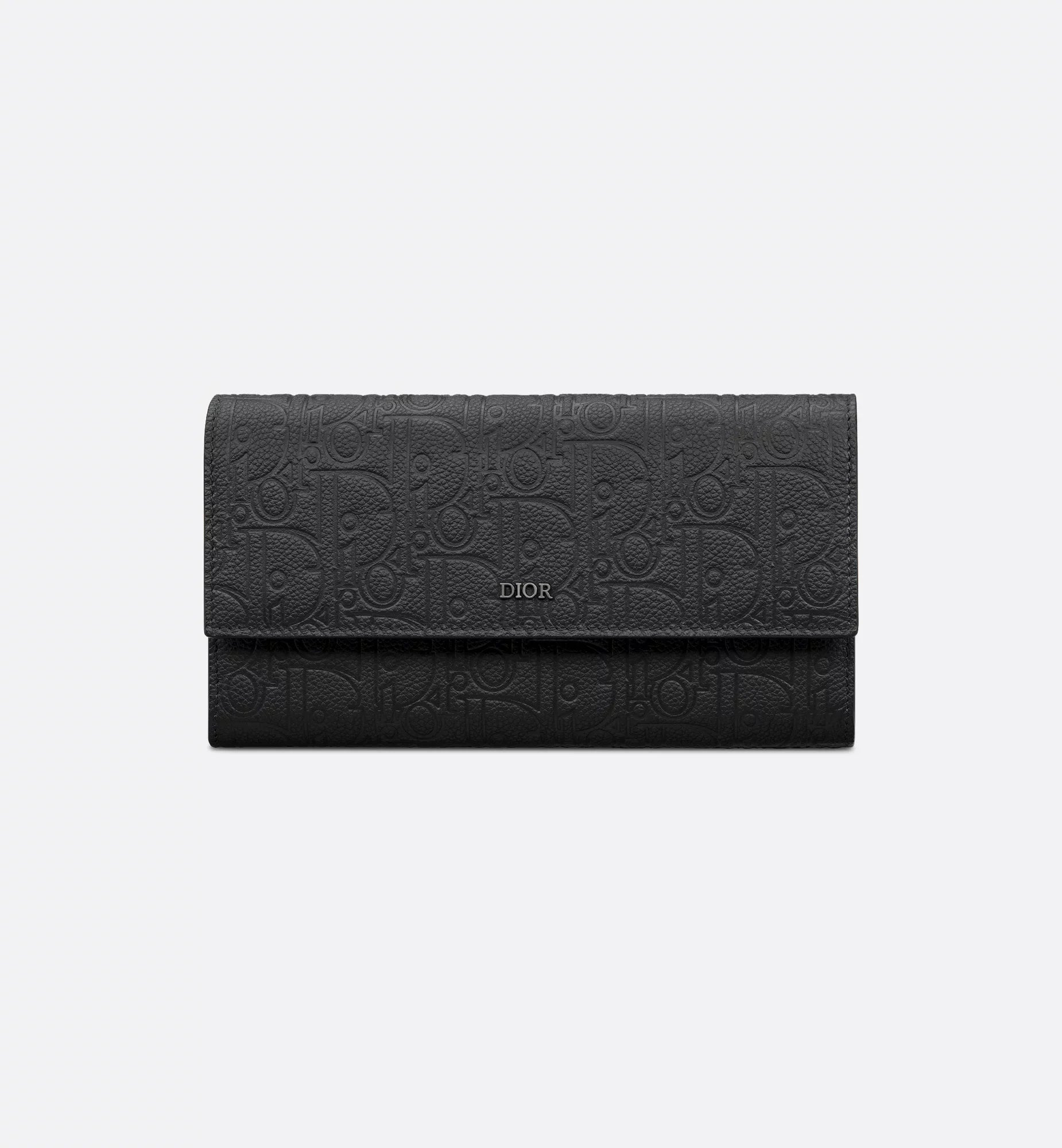 Main composition: calfskin Calfskin and technical fabric lining Main snap compartment Fourteen card slots Interior zip pocket Bill compartment Two gusseted compartments Ruthenium-finish brass Dior signature on the front Embossed Dior signature on the interior Dust bag included Made in Italy/Spain