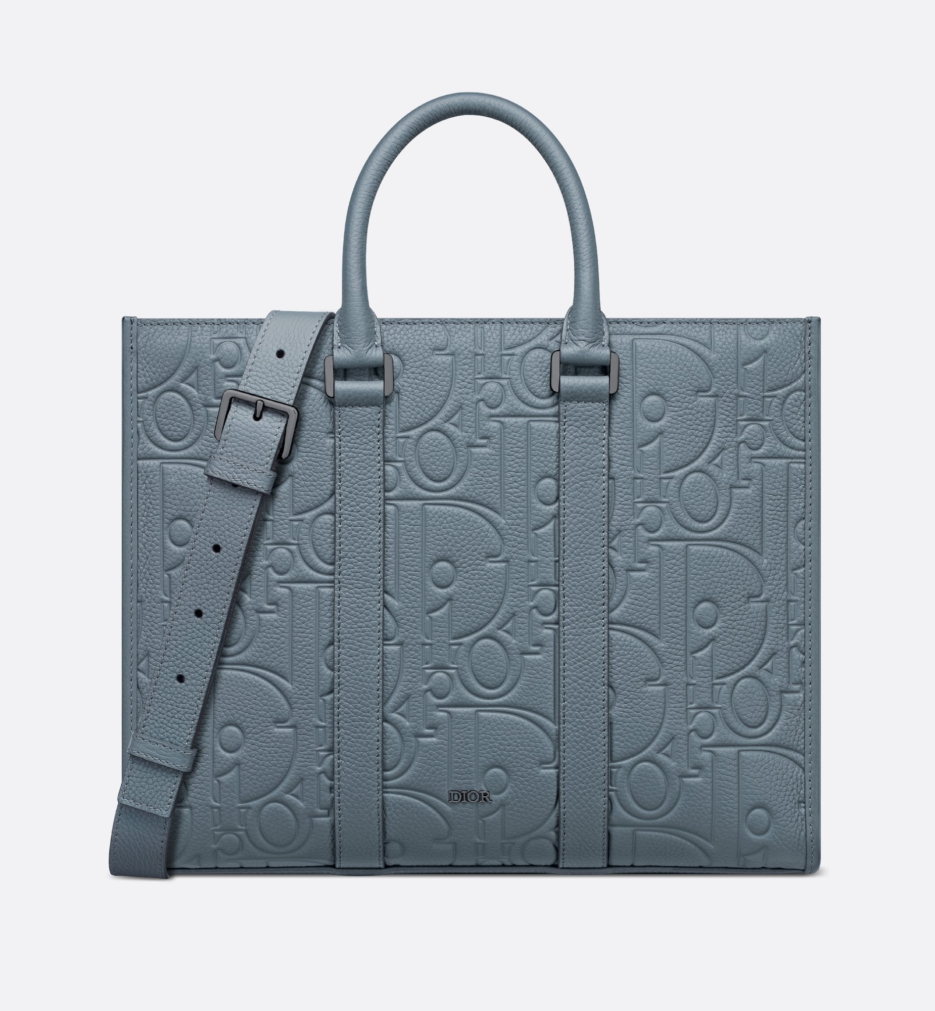 New for Winter 2024, the East-West tote bag combines timeless elegance with Dior's couture spirit. Displaying the virtuosity of the House ateliers, the Dior Gravity leather showcases the iconic motif delicately embossed on deep gray calfskin accented by tonal grained calfskin detailing and the Dior signature on the front. The structured design reveals a spacious interior with a pocket for a laptop as well as a zip pocket. Folding handles and an adjustable and removable strap allow the medium bag to be carried by hand, worn over the shoulder or crossbody.