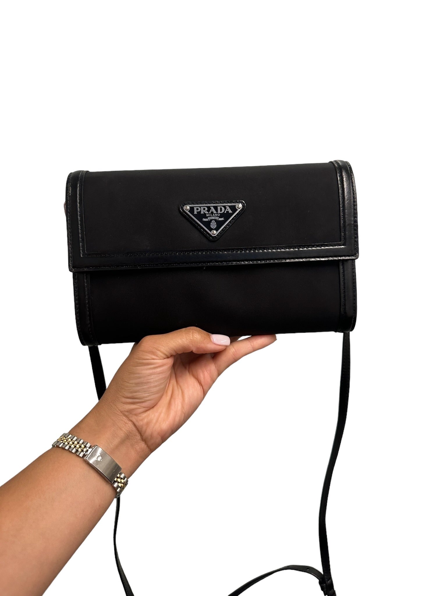 PRADA - Black Tessuto Nylon Vitello Wallet on Strap