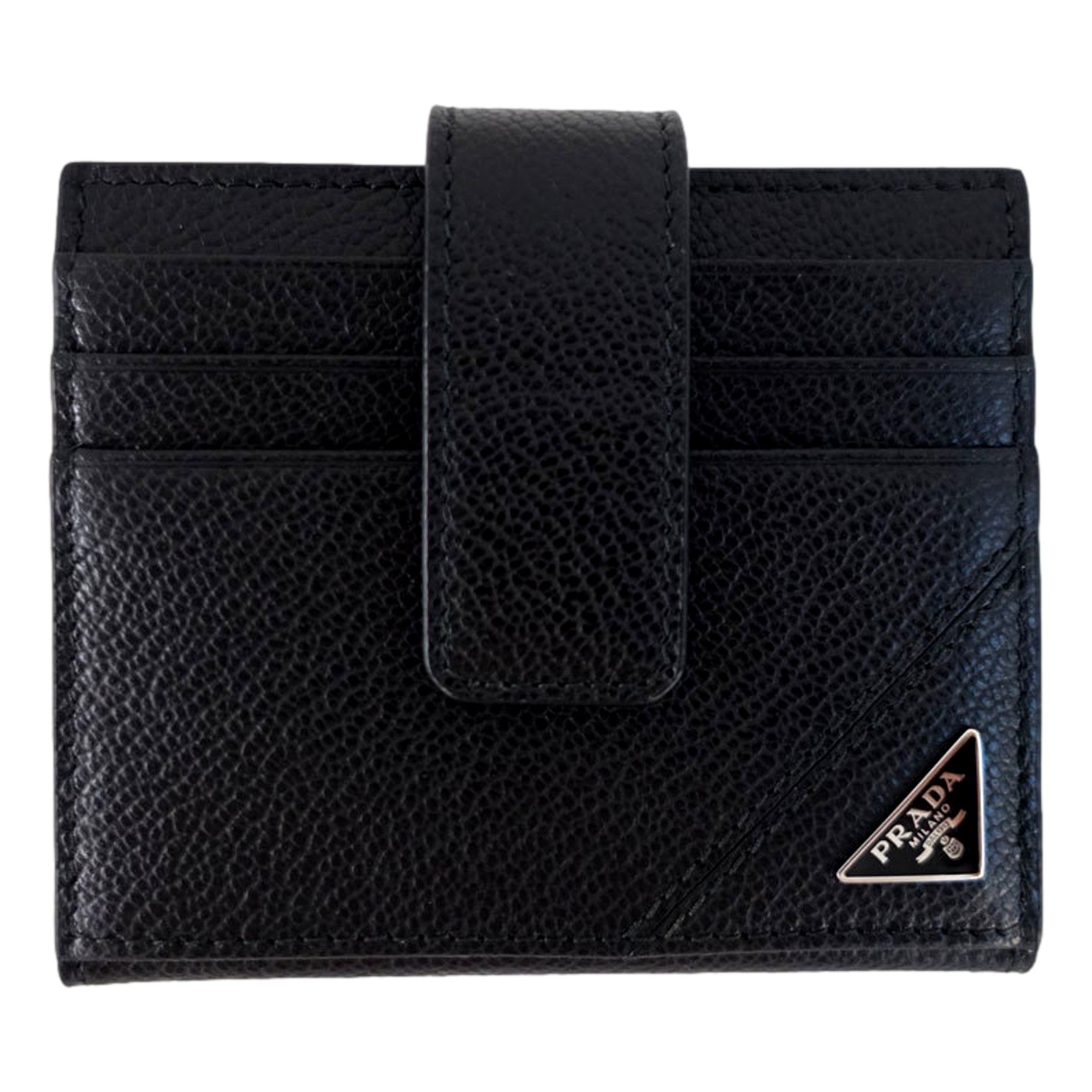 Prada Black Vitello Grain Leather Card Bifold Wallet
