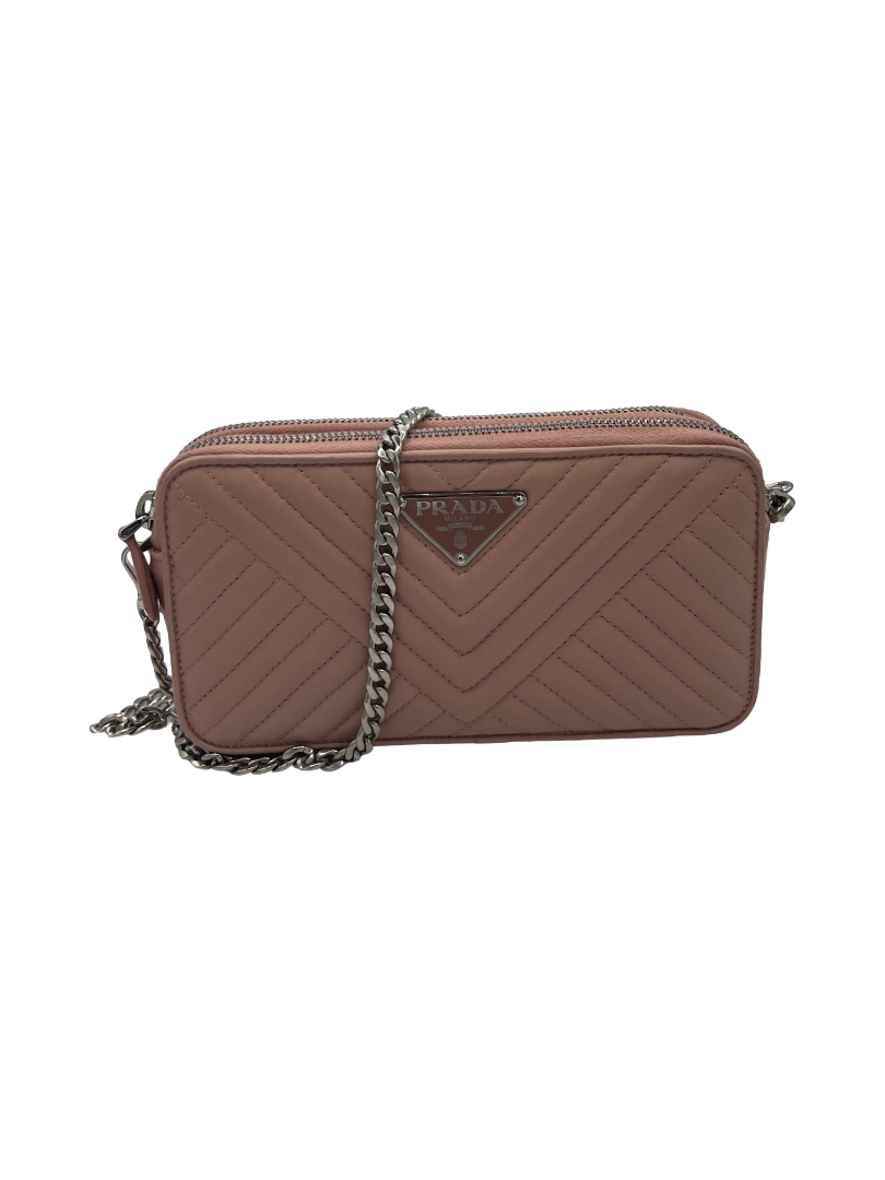 PRADA - Double Zip Wallet on Chain Crossbody Chevron Leather Mini