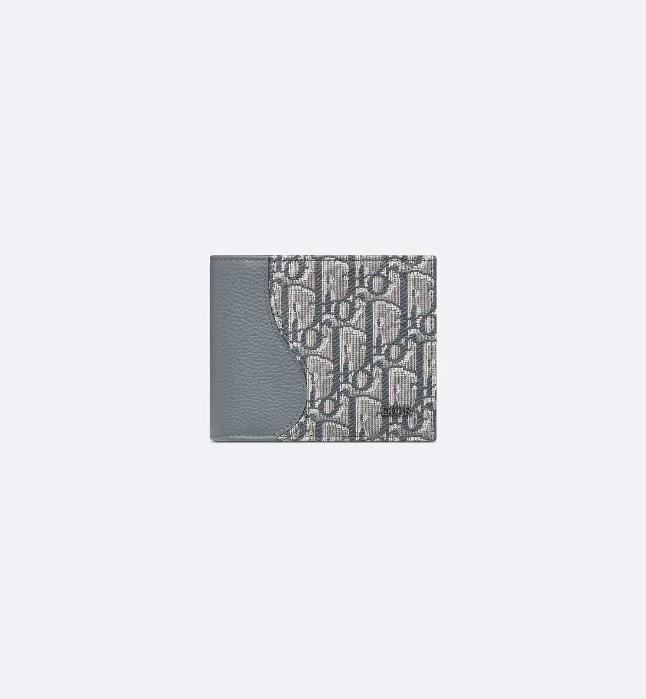 Saddle Bifold Card Holder Deep Gray Grained Calfskin Marquetry With Deep Gray Dior Oblique Jacquard