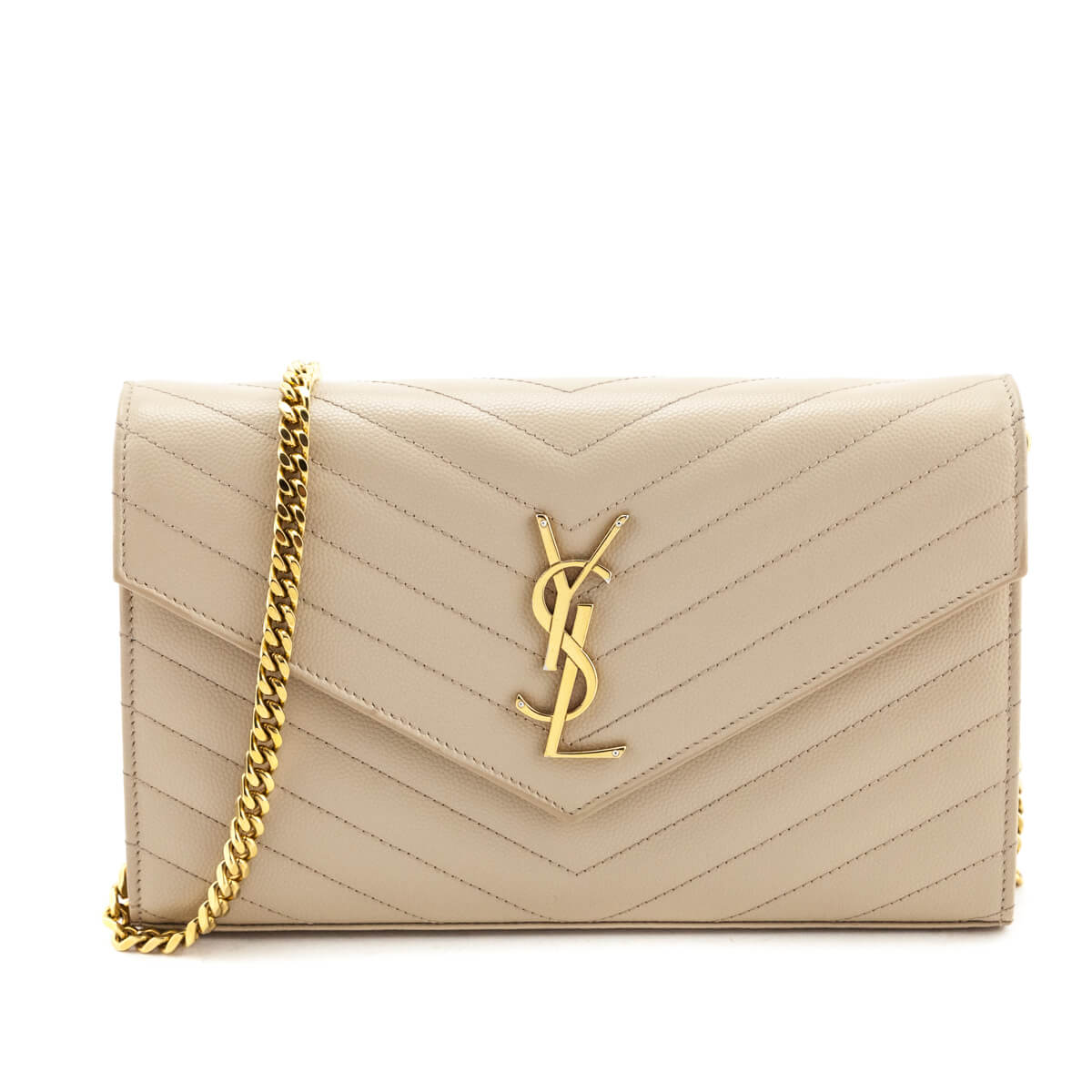 Saint Laurent Beige Grain De Poudre Matelasse Chevron Monogram Chain Wallet