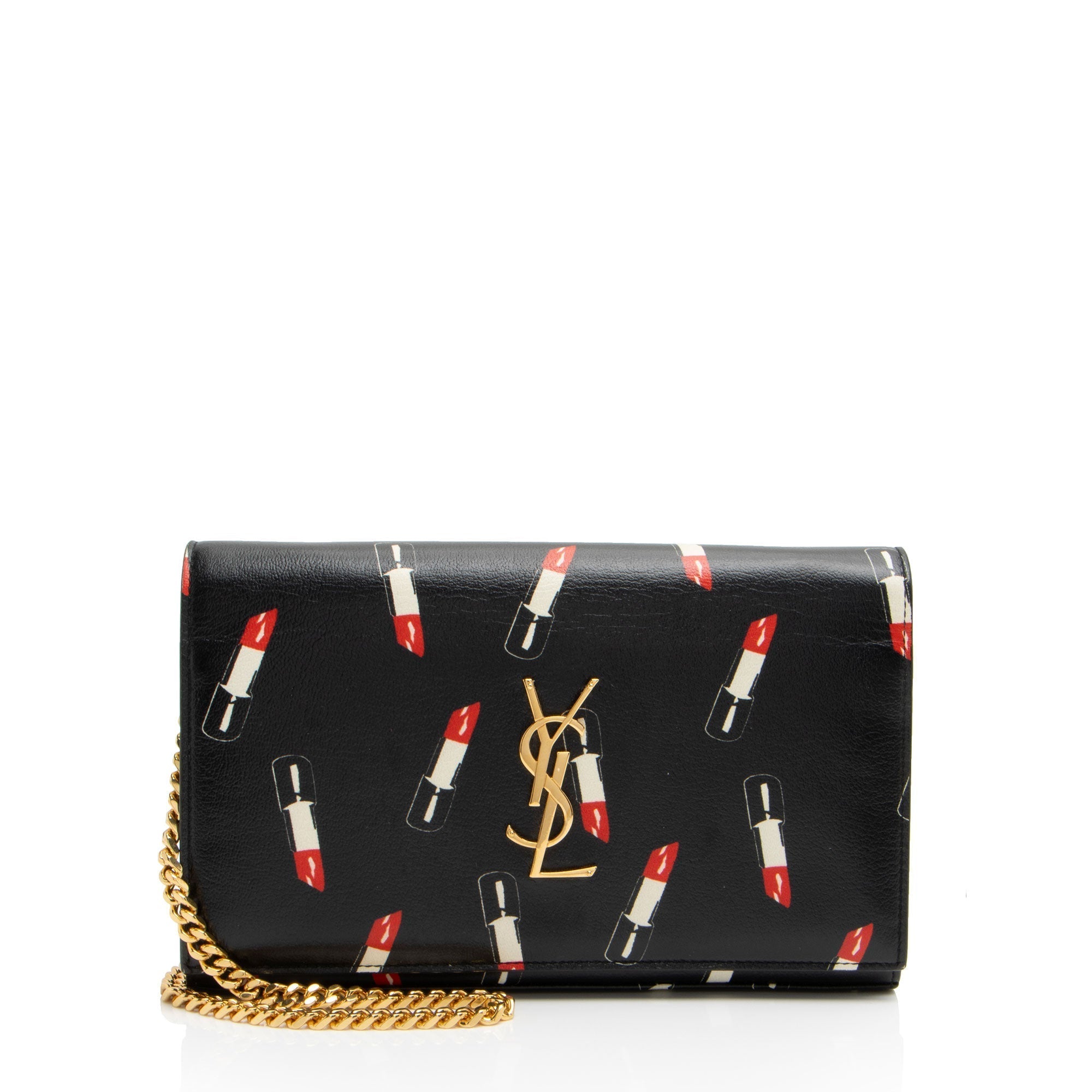 Saint Laurent Calfskin Lipstick Monogram Wallet on Chain (SHF-7LJnWn)