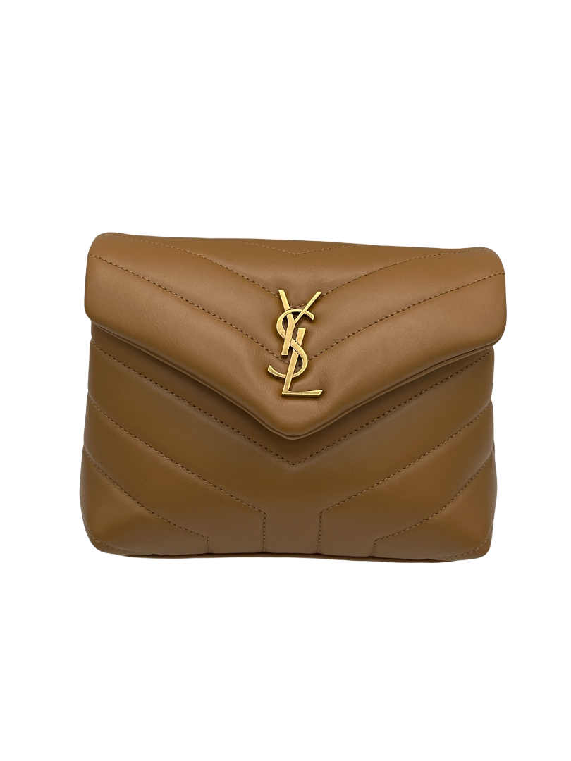 This SAINT LAURENT Calfskin Quilted Monogram Toy Loulou Satchel in Camel is a stylish addition to your crossbody bag collection.