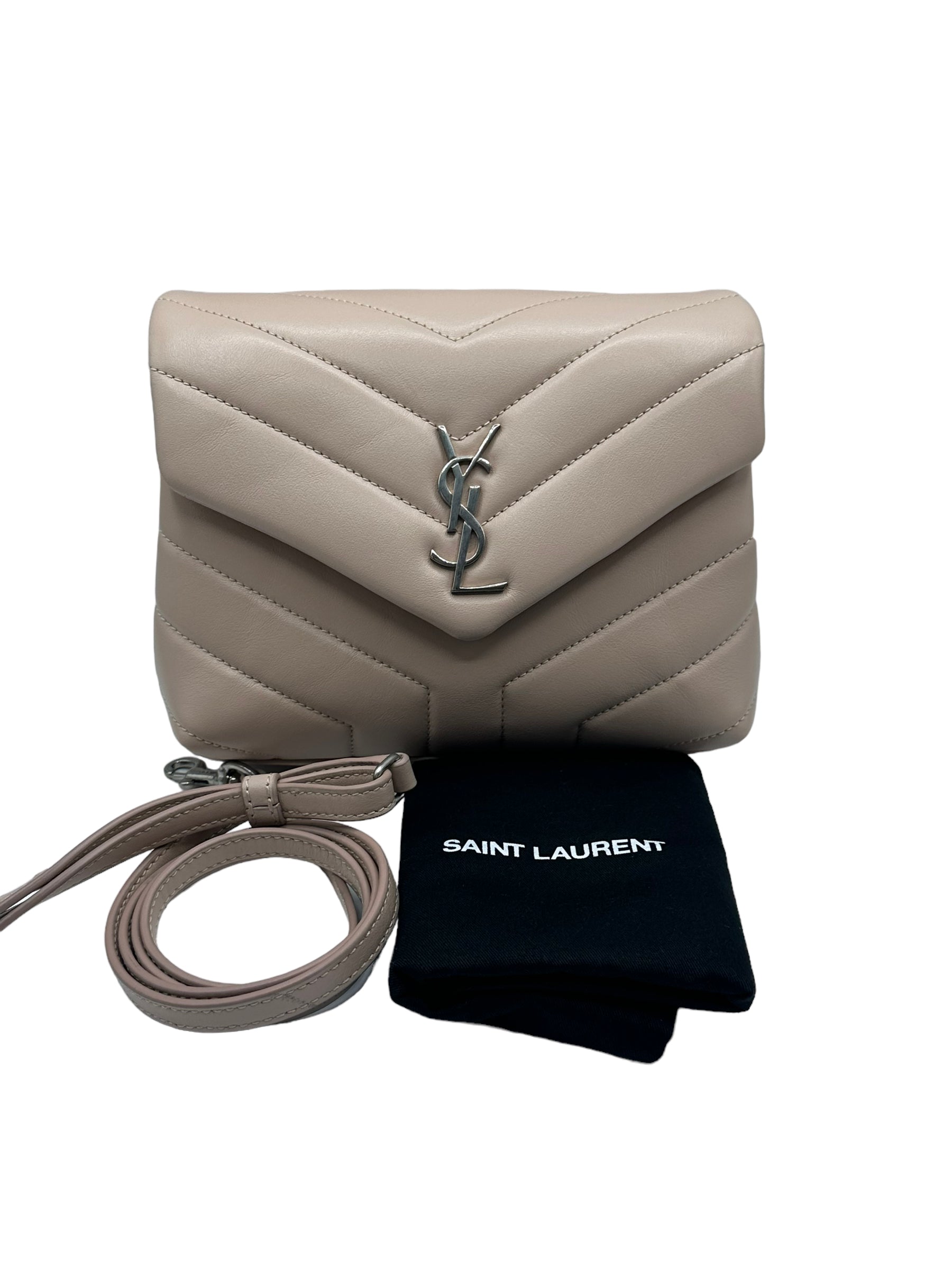 SAINT LAURENT- Calfskin Y Quilted Monogram Toy Loulou Satchel Dark Beige