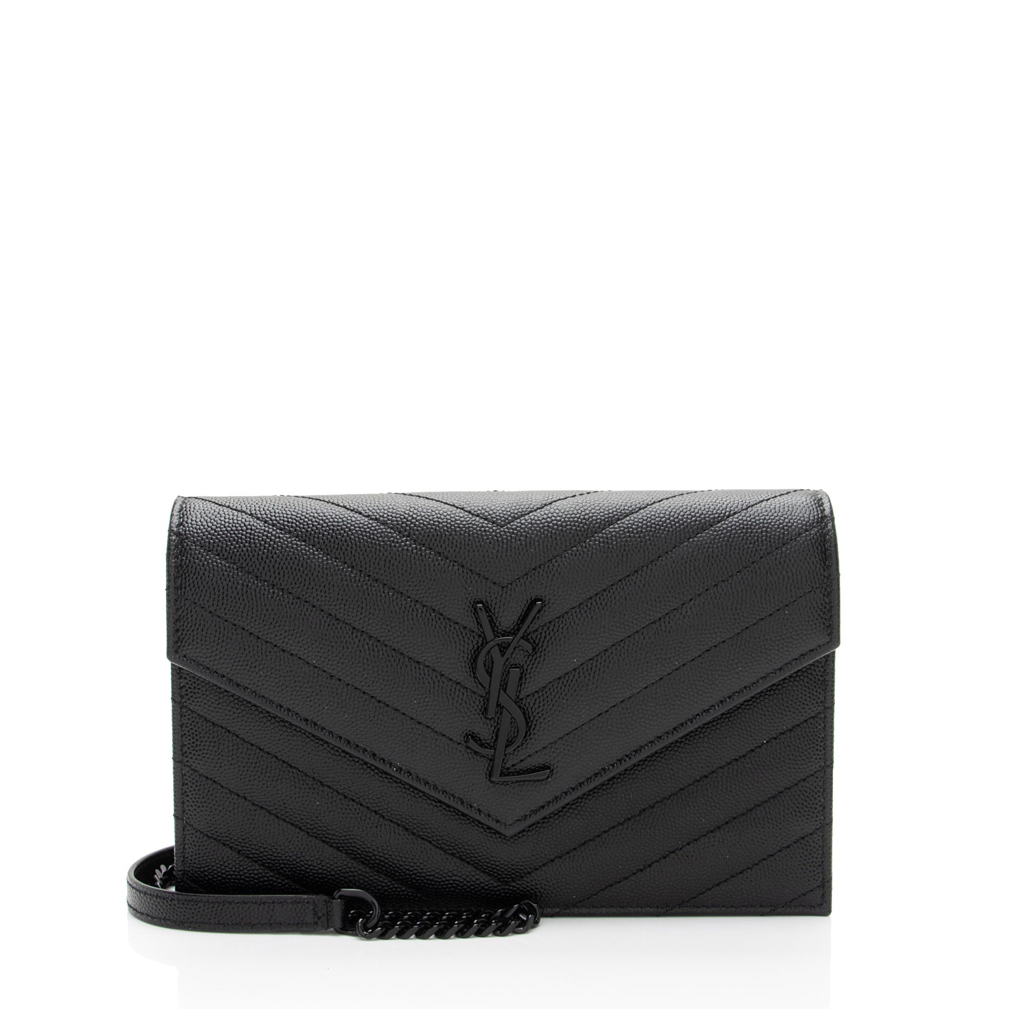 Saint Laurent Matelasse Grain de Poudre Monogram Envelope Chain Wallet (SHF-igJITM)