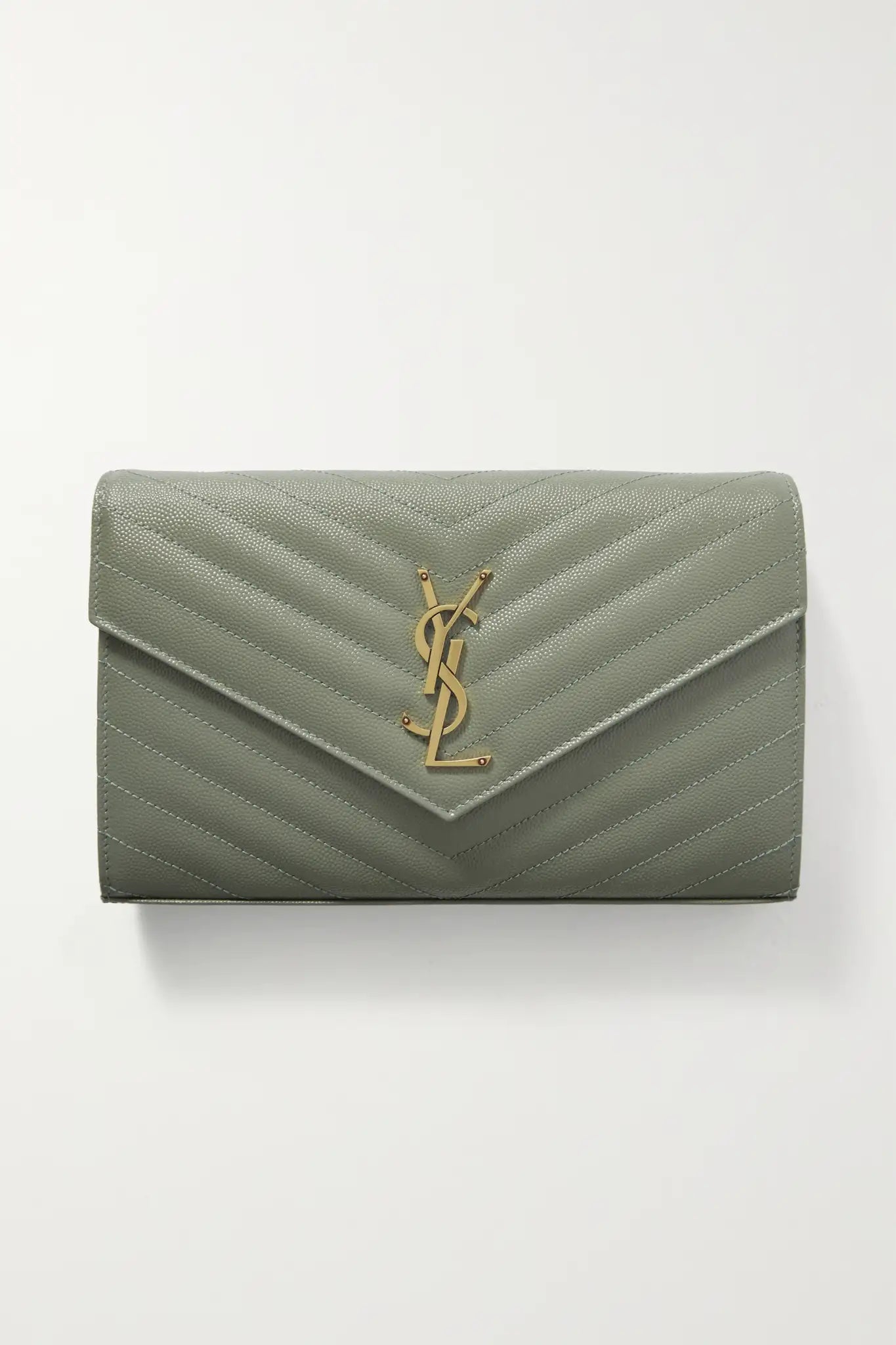 YSL SAINT LAURENT Monogramme quilted textured-leather shoulder bag (Light Green)