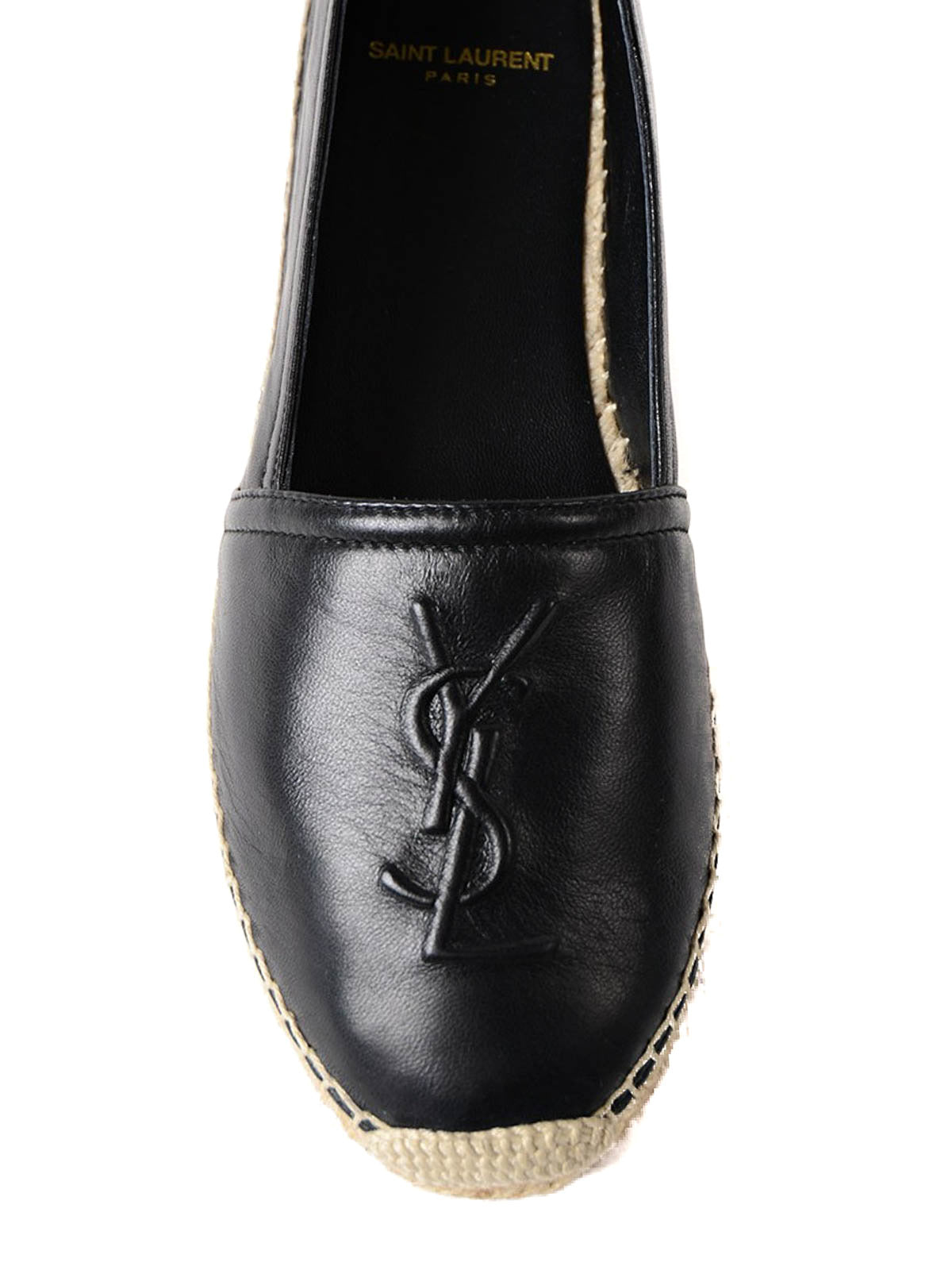 An embossed Saint Laurent logo adds an understated signature element to a classic espadrille that balances earthy style with effortless modern sophistication.