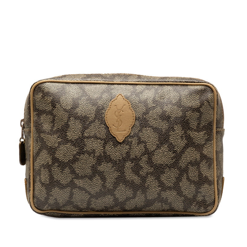 Saint Laurent YSL Logo Zillaf Clutch Bag Pouch Grey Beige PVC Leather Saint Laurent