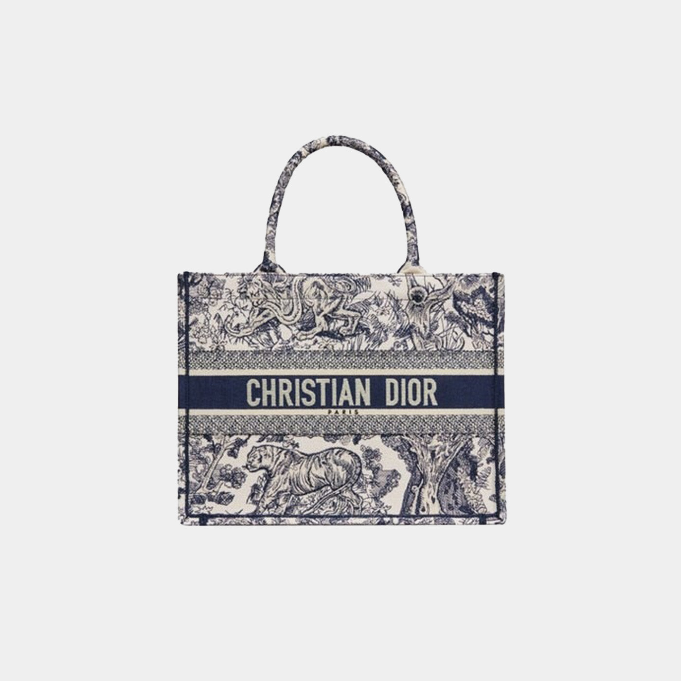 Introduced by Maria Grazia Chiuri, Creative Director of Christian Dior, the Dior Book Tote has become a staple of the Dior aesthetic. Designed to hold all the daily essentials, the style is fully embroidered with the ecru and blue Toile de Jouy motif enhanced by the Christian Dior Paris signature on the front. The medium tote exemplifies the House's signature savoir-faire and may be carried by hand or worn over the shoulder.