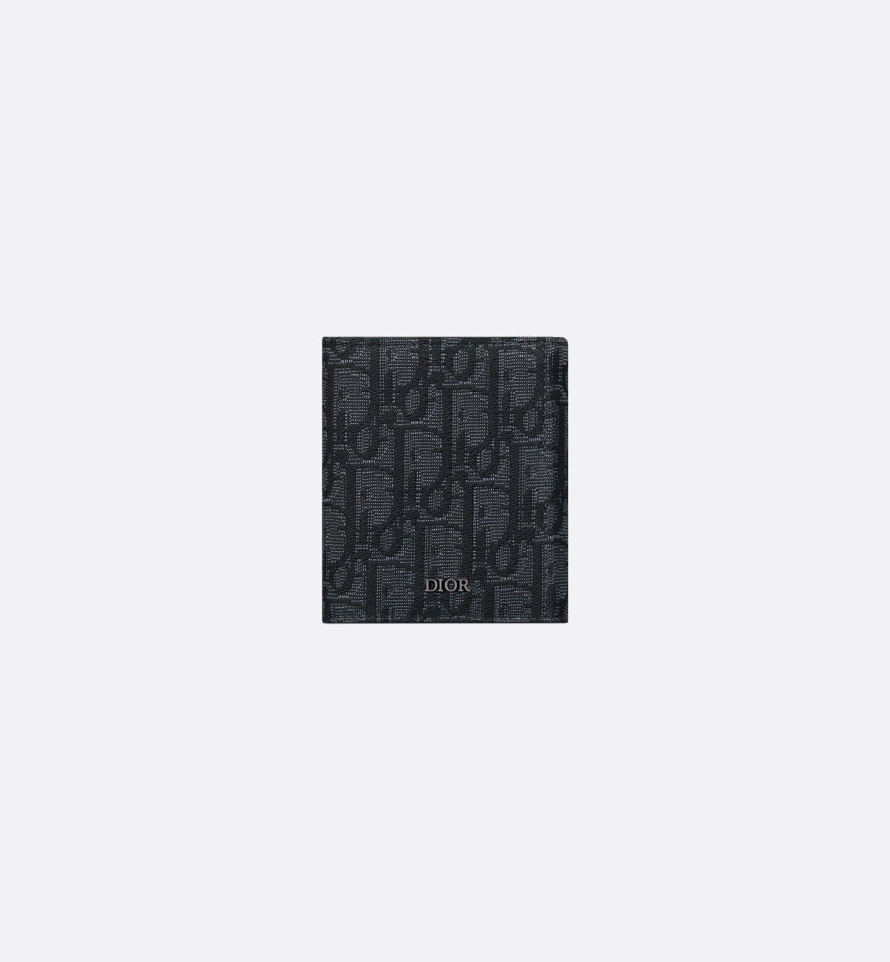 Black Dior Oblique jacquard Black smooth calfskin Ruthenium-finish brass Dior signature on the front Embossed Dior signature on interior Tri-fold style Snap closure Bill holder, flat compartment and seven card slots Dust bag included Made in Italy