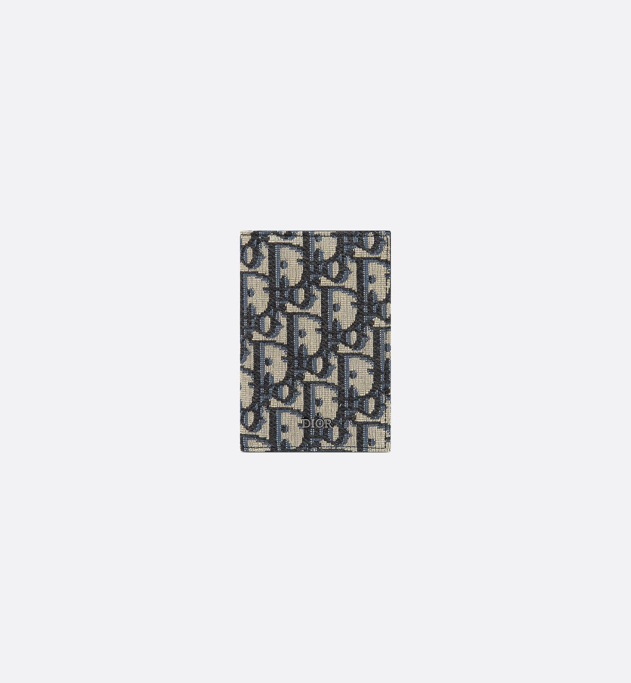 Vertical Bifold Card Holder Beige And Black Dior Oblique Jacquard