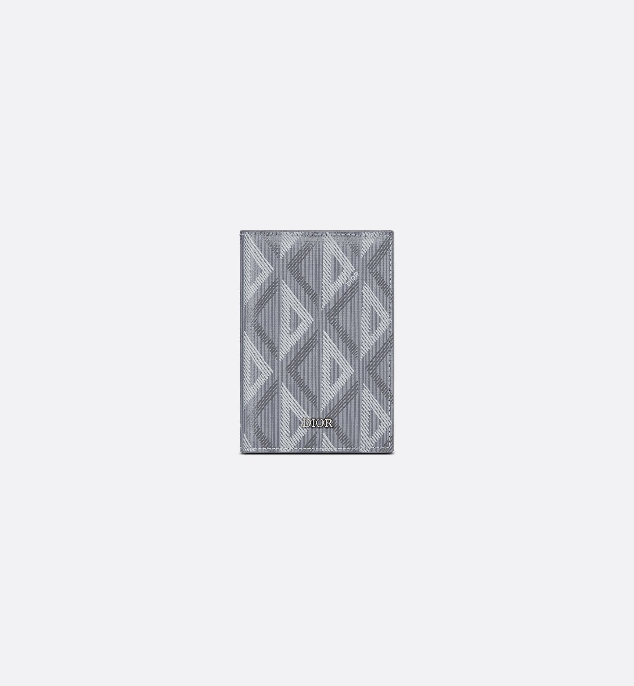 Vertical Bifold Card Holder Dior Gray Coated Cotton Canvas With Cd Diamond Print