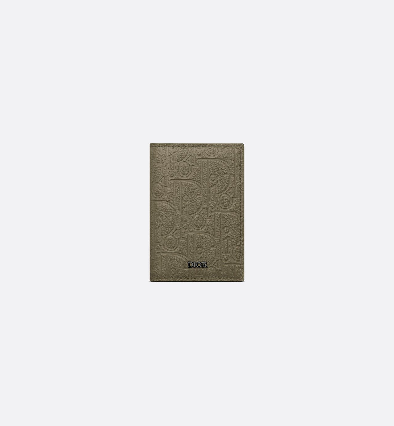 Vertical Bifold Card Holder Khaki Dior Gravity Leather
