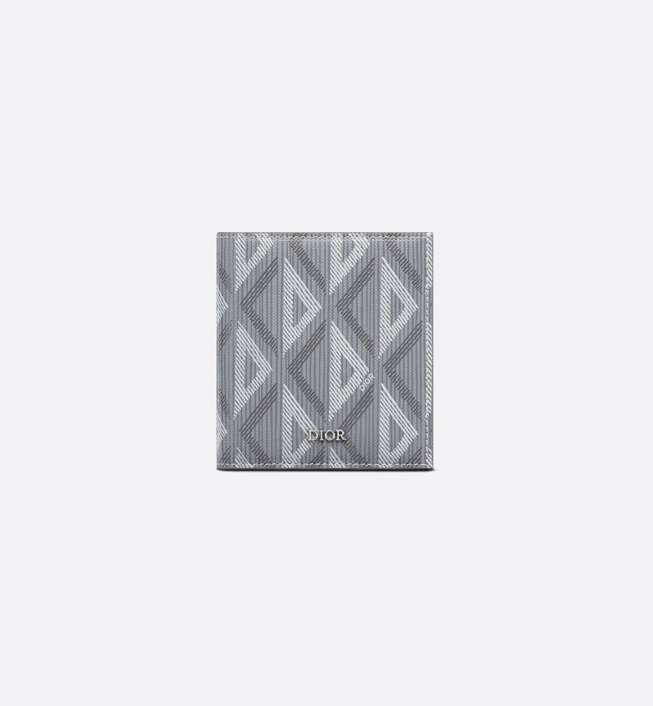 The vertical bifold wallet is a compact and refined accessory. Crafted in Dior gray coated cotton canvas with the CD Diamond printed motif, it showcases Marc Bohan's 1974 graphic design reimagining the CD initials in the form of a diamond with architectural lines, and is enhanced by a Dior signature on the front. The tonal smooth calfskin interior features a bill compartment, two slip pockets for receipts and six card slots. The bifold wallet will easily slip into any pocket or bag.