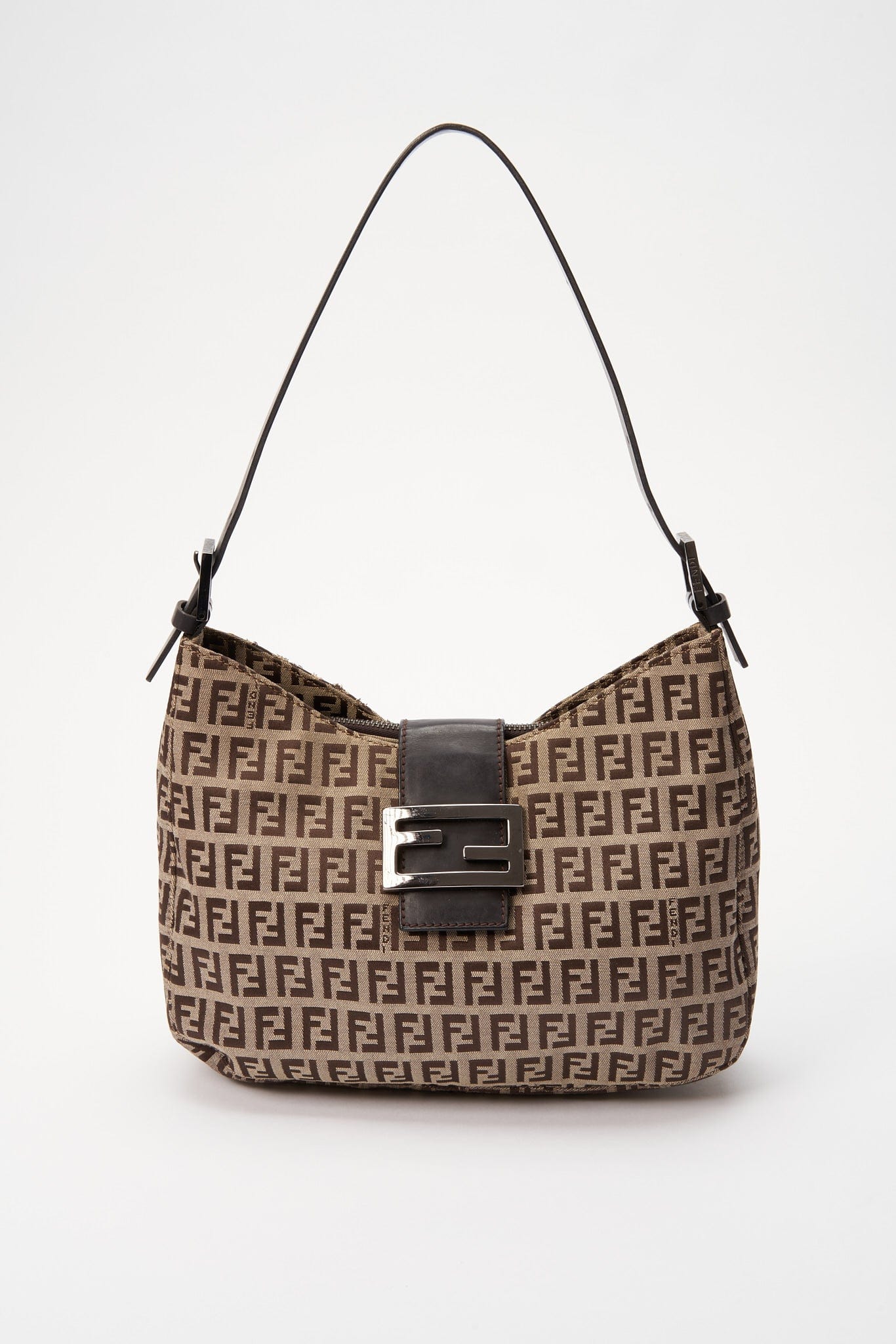 A beautiful vintage Fendi shoulder bag in the iconic beige/brown Zucchino canvas. This bag has brown leather trim and handles plus Fendi branded gunmetal hardware.