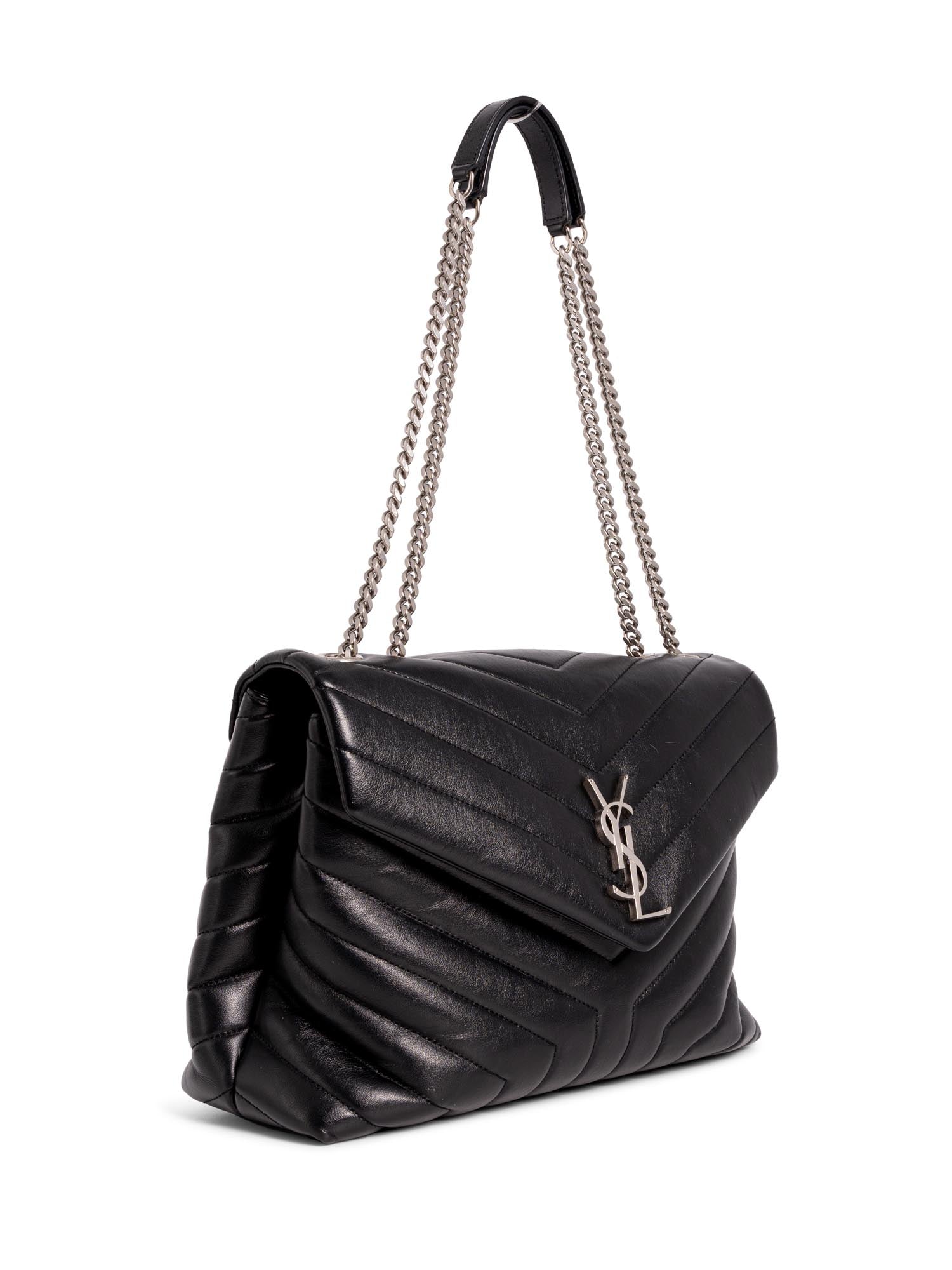 Yves Saint Laurent Chevron Leather Medium Loulou Flap Messenger Bag Black